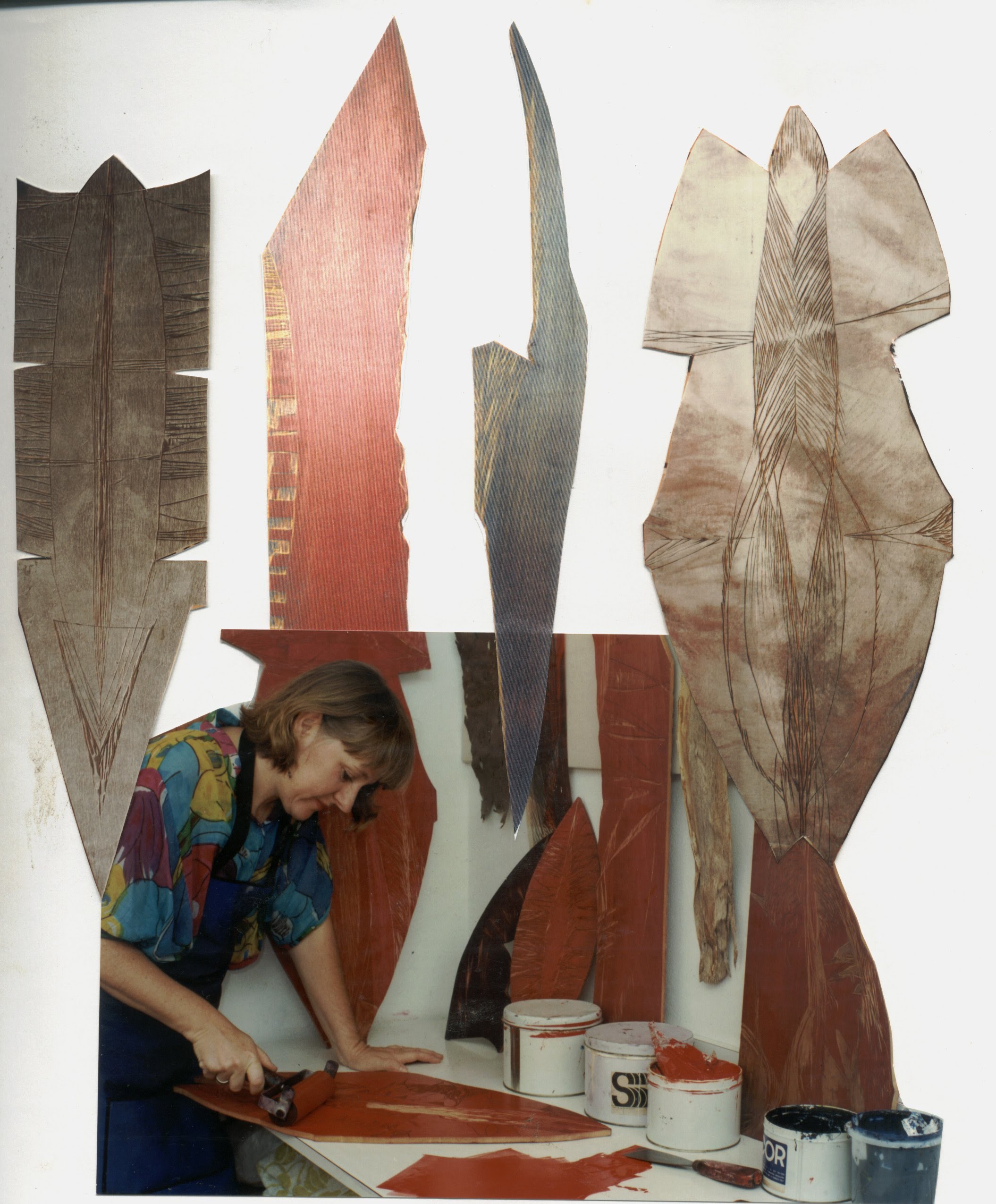 Nestas gravuras, a impressão faz parte da construção da imagem: o gravar e o imprimir são simultâneos e sequenciais conferindo realidade às polaridades opostas das imagens. Me questiono: são as matrizes gravadas ou são as cores que elaboram e estruturam a imagem? As imagens, são estruturadas a partir de limites entre cores quentes e frias, as quais são desdobradas em densidades e transparências e as matrizes moduladas, recortadas em formatos diversos, revelam oposições polares, desde a sua concepção. Os módulos, depois de impressos, revelam a síntese de um percurso feito de incisões e reentrâncias gravadas. Assim penetro em novas fronteiras, captando nas matérias, suas epidermes, propriedades e superfícies.  Percebo que a madeira da matriz já não é mais a madeira da árvore, assim como a cor, não é mais a tinta da lata, e o papel, não é apenas o suporte receptor da imagem.