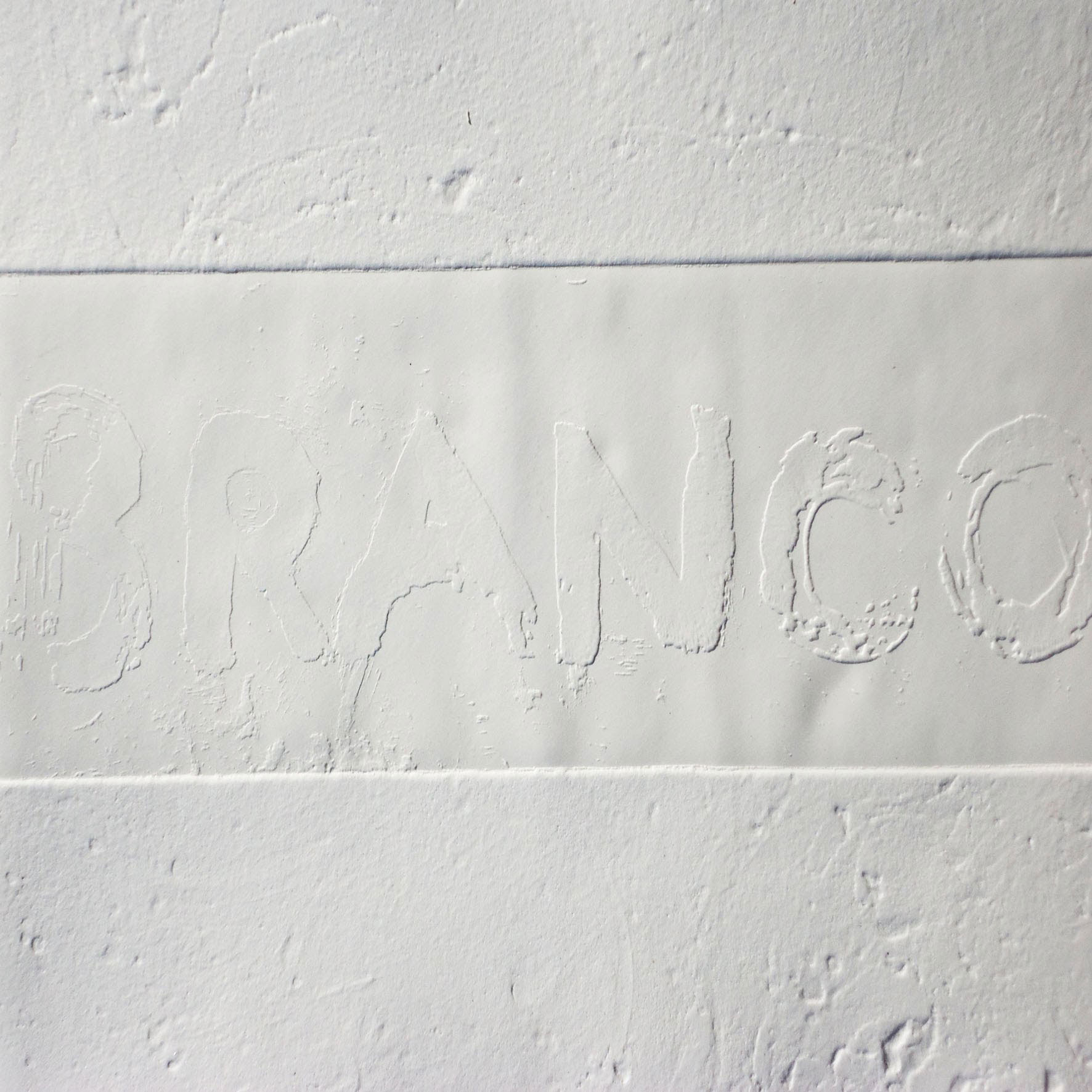 Nesses trabalhos, procuro materializar o branco em sua alvura e plenitude. Contudo, o branco é corrompido pelas intervenções repetidas de tinta branca sobre a matéria branca dos papéis, e também pelas marcas e grafias gravadas em matrizes de cobre. Assim, em suas variações cromáticas de diversos outros brancos, detectam-se em seus ruídos, uma polifonia de palavras e fragmentos de letras em branco. Nessa busca, coagulam-se as palavras branco, blanco e blanc. Surgem os ruídos do branco… Quantos brancos na expressão deu branco!